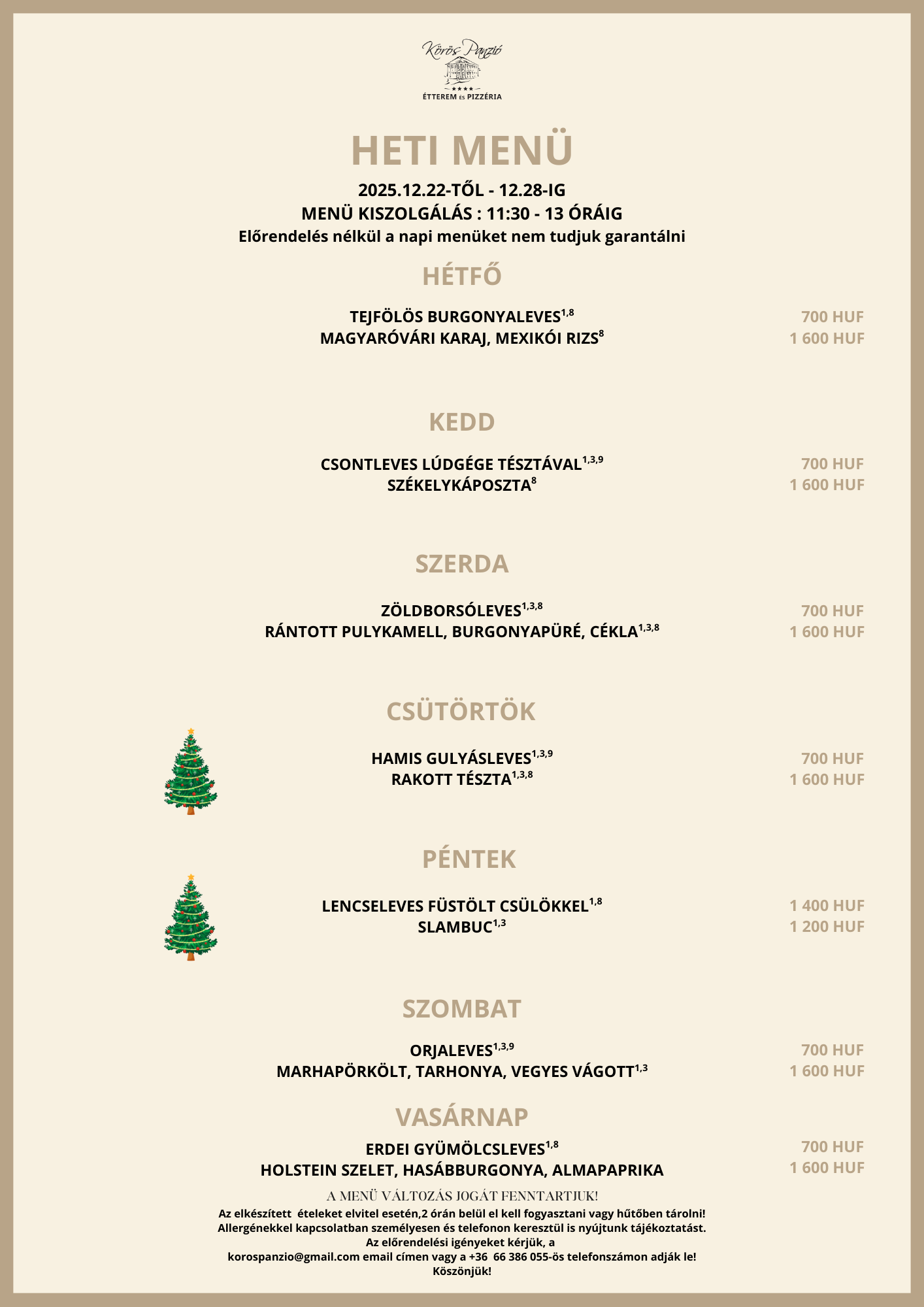 Továbbá tájékoztatjuk Önöket, hogy a menüváltozás jogát továbbra is fenntartjuk, illetve előrendelés nélkül a napi menüket nem tudjuk garantálni.